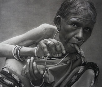 Devi- i, 48”x36”, Charcoal and white pastel on canvas
